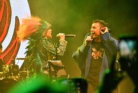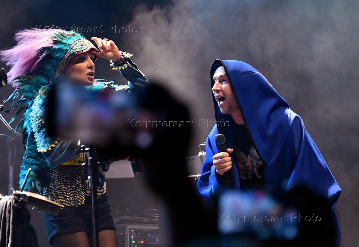Концерт молдавской рок-группы Zdob și Zdub "Здоб ши здуб" в концертном клубе "ГлавClub". Приглашенный гость, лидер группы "Маша и медведи" Мария Макарова во время концерта.