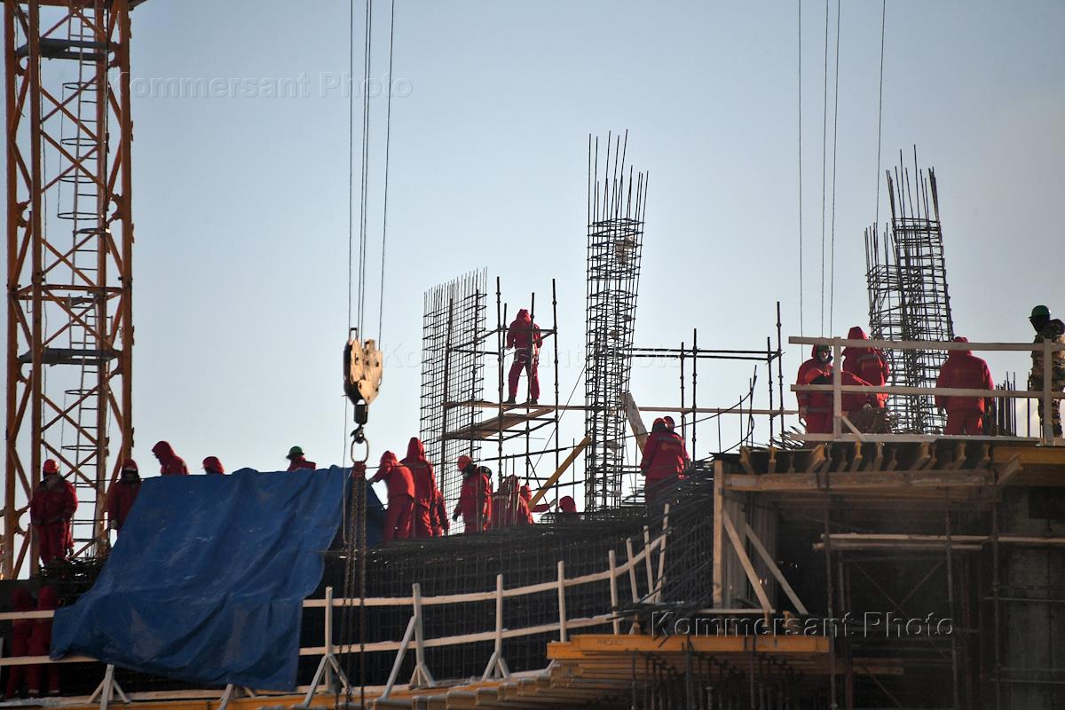 Виды Москвы. Жанровая фотография. Рабочие на строительной площадке.