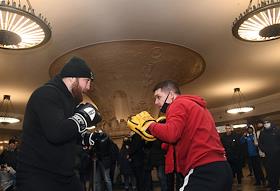 Московский метрополитен совместно с Федерацией силового экстрима России при поддержке РосМолСпорта Московской области провели спортивный день для пассажиров метро на станции "Курская". Мастер-класс по боксу от чемпиона мира по ММА.