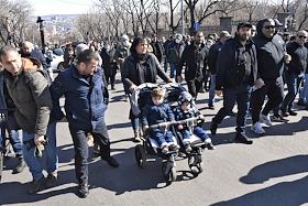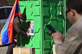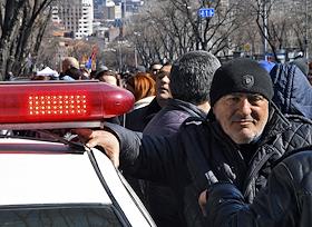 Политическая ситуация в Ереване. Люди на проспекте Баграмяна, где проходит митинг оппозиции. Оппозиция требует отставки премьер-министра Армении Никола Пашиняна после подписания соглашения о прекращении огня в Нагорном Карабахе. 25 февраля к этому требованию присоединился Генеральный штаб вооруженных сил Армении, в ответ Н. Пашинян заявил о попытке военного переворота в стране и провел шествие со своими сторонниками по центру Еревана. Оппозиция заявила о начале бессрочных акций протеста, разместив палаточный лагерь на проспекте Баграмяна недалеко от здания парламента.