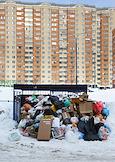 Виды Москвы. Жанровая фотография. Свалка мусора у площадки для мусорных контейнеров.