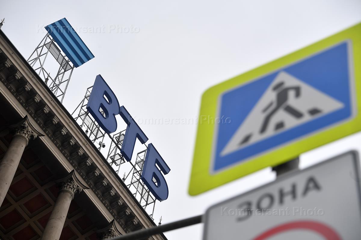 Виды Москвы. Жанровая фотография. Вывеска банка ВТБ и дорожный знак "пешеходный переход".
