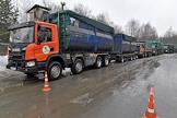 Участники общественного экологического проекта "Экорейд" провели инспекцию полигона твердых бытовых отходов (ТБО) "Тимохово". Колонна мусоровозов перед полигоном.