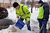 Участники общественного экологического проекта "Экорейд" во время проведения инспекции полигона твердых бытовых отходов (ТБО) "Тимохово". Технические сооружения на полигоне.