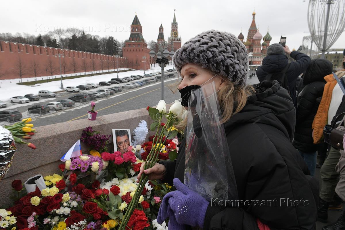 Мероприятия, посвященные памяти политика Бориса Немцова, в Москве Цветы на месте убийства политика Бориса Немцова на Большом Москворецком мосту. Сопредседатель партии "Парнас" Борис Немцов был застрелен на Большом Москворецком мосту в Москве 27 февраля 2015 года.