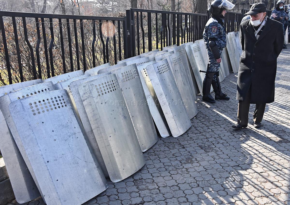 Политическая ситуация в Ереване. Сотрудники правоохранительных органов во время митинга оппозиции у здания парламента Армении.