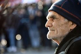 Политическая ситуация в Ереване. Митинг сторонников оппозиции у здания парламента Армении. Женщина на балконе жилого дома наблюдает за митингом.