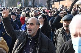 Политическая ситуация в Ереване. Сторонники оппозиции во время митинга у здания парламента Армении.