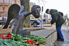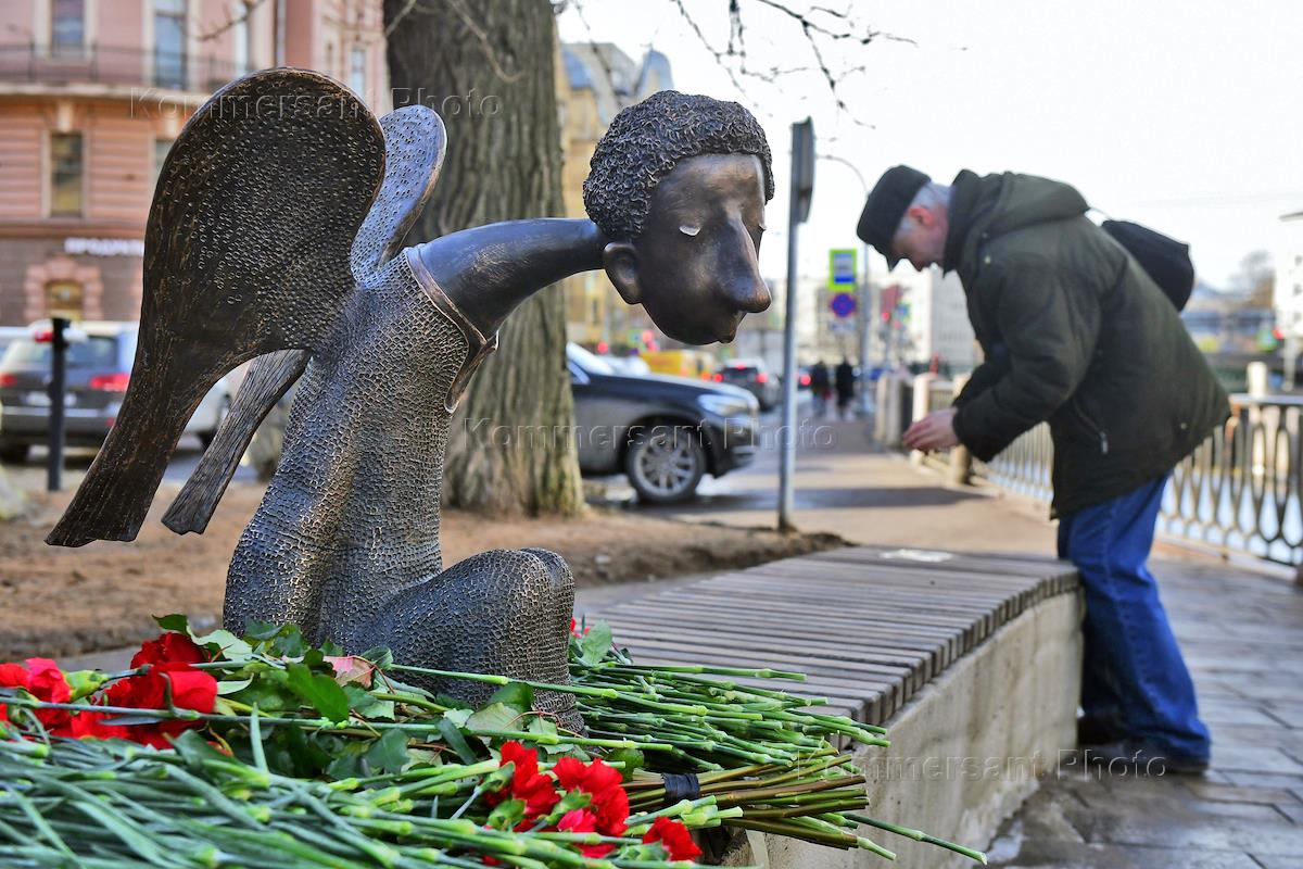 Скульптура "Печальный ангел" в память о врачах, погибших во время эпидемии COVID-19. Автор скульптуры петербургский художник Роман Шустров, который скончался от коронавируса 14 мая 2020 года.
