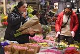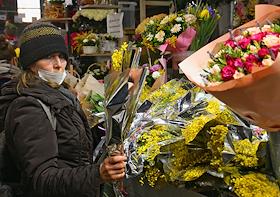 Подготовка к 8 марта. Торговля цветами на Рижском цветочном рынке. Жанровая фотография.