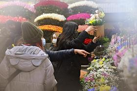 Жанровая фотография. Продажа цветов к 8 марта на Рижском цветочном рынке.