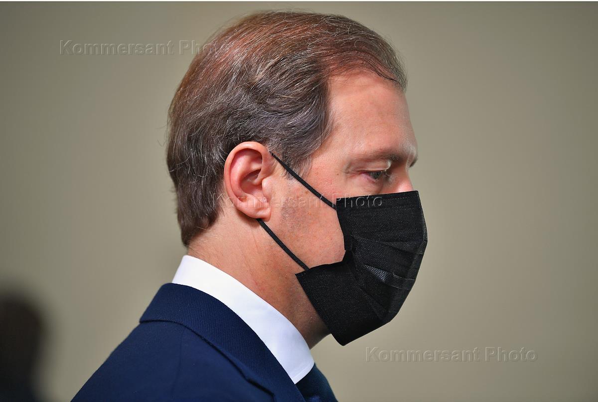 Рабочая поездка председателя правительства Михаила Мишустина в Кемерово. Совещание по вопросу транспортного обеспечения вывоза угля из Кемеровской области – Кузбасса. Министр промышленности и торговли России Денис Мантуров во время совещания.