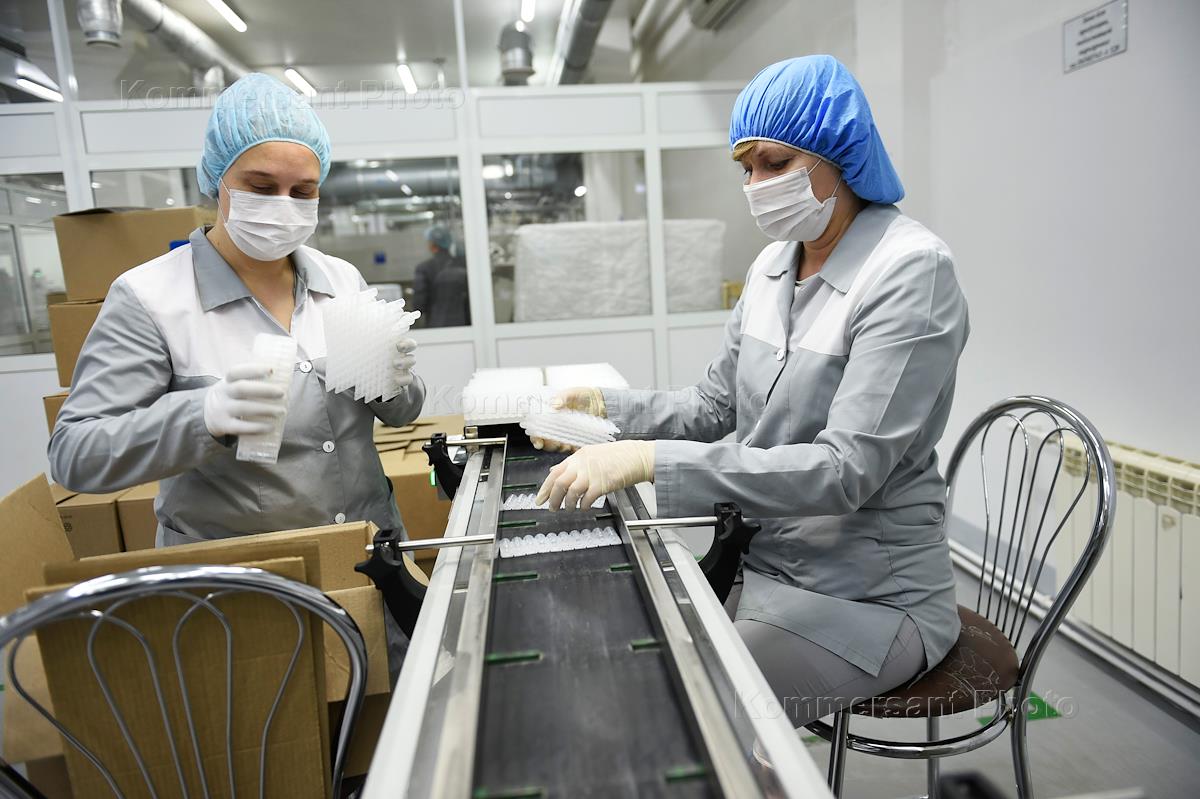 The work of the pharmaceutical company Renewal, JSC PFK Obnovlenie ("Manufacturing pharmaceutical company Obnovlenie"), engaged in the development and production of drugs. Genre photography. The work of the packaging department.