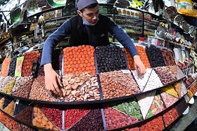 Виды Москвы. Жанровая фотография. Москворецкий рынок. Продавец у прилавка с сухофруктами.