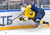 Континентальная хоккейная лига (КХЛ). Чемпионат сезона 2020/21. Матч между командами "Динамо" ( Москва) - "Северсталь" (Череповец) на стадионе "ВТБ Арена". Игрок команды "Северсталь" Шон Лалонд (слева) во время матча.