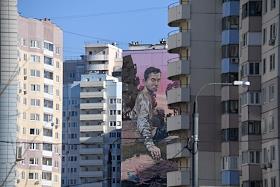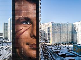 Виды Одинцово. Портрет первого космонавта Юрия Гагарина в микрорайоне Трёхгорка.