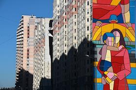 Виды Одинцово. Микрорайон Трёхгорка. Граффити на торцевой стене жилого многоэтажного дома.