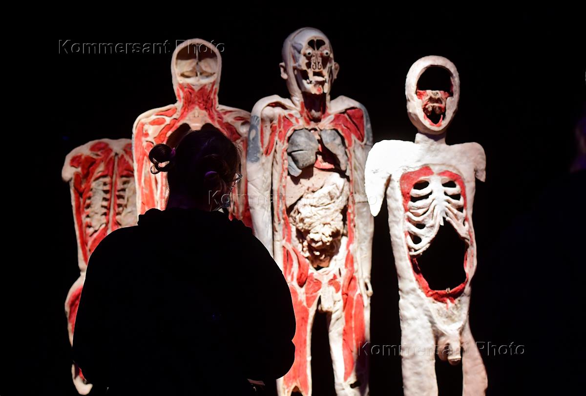 Анатомическая выставка "Мир тела" доктора Гюнтера фон Хагенса в павильоне № 21 на ВДНХ. Посетители на выставке.
