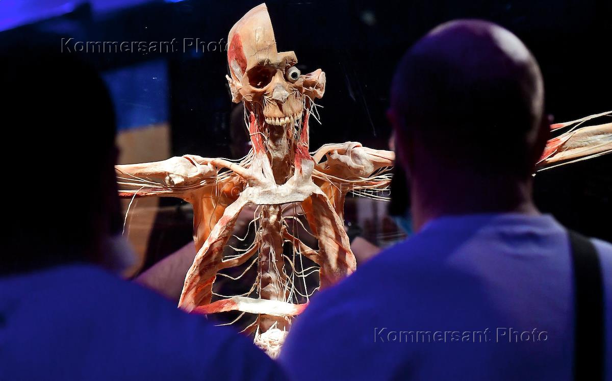 Анатомическая выставка "Мир тела" доктора Гюнтера фон Хагенса в павильоне № 21 на ВДНХ. Посетители на выставке.