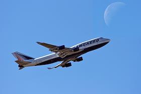 Жанровая фотография. Самолет авиакомпании "Трансаэро" (Transaero) в небе.
