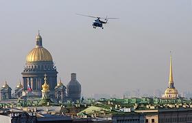 Виды Санкт-Петербурга. Жанровая фотография. Вертолет над городом.