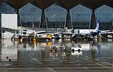 Жанровая фотография. Самолеты на взлетно-посадочной полосе в аэропорту Пулково.