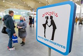 Жанровая фотография. Знак "Место для поцелуев" в аэропорту Пулково.