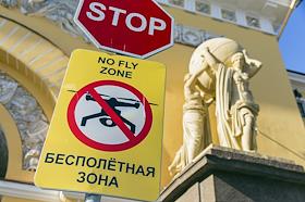 Жанровая фотография. Знак "Запрет на полеты квадрокоптеров". Предупреждение о запрете полетов. Бесполетная зона.