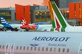 Жанровая фотография. Самолет авиакомпании "Аэрофлот" в аэропорту Пулково.