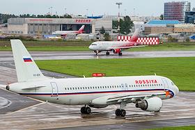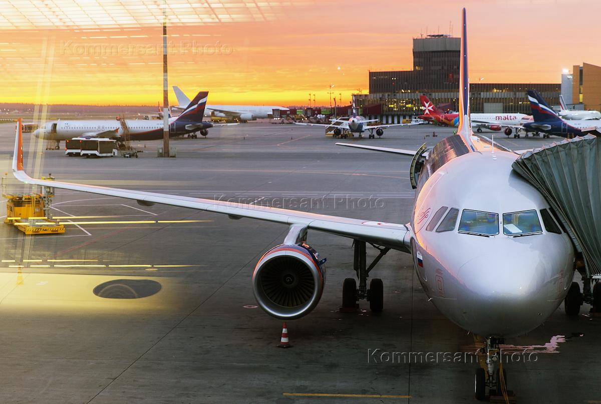 Жанровая фотография. Самолет авиакомпании Rossiya в аэропорту Пулково.