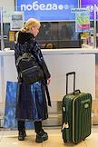 Жанровая фотография. Пассажирка в аэропорту Пулково перед стойкой авиакомпании "Победа".