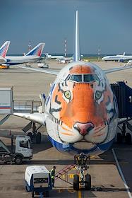 Жанровая фотография. Самолет авиакомпании "Трансаэро" в аэропорту Пулково.