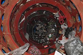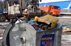Работа комплекса по переработке отходов (КПО) "Восток". Комплекс разработан и построен компанией "Эко-Лайн". Предприятие входит в перечень объектов национального проекта "Экология". Жанровая фотография. Мусорный контейнер на территории комплекса.