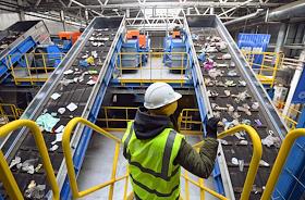 Работа комплекса по переработке отходов (КПО) "Восток". Комплекс разработан и построен компанией "Эко-Лайн". Предприятие входит в перечень объектов национального проекта "Экология". Жанровая фотография. Сортировочный цех.