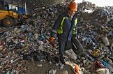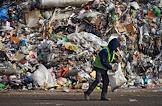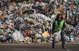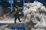 Работа комплекса по переработке отходов (КПО) "Восток". Комплекс разработан и построен компанией "Эко-Лайн". Предприятие входит в перечень объектов национального проекта "Экология". Жанровая фотография. Сотрудник на площадке выгрузки отходов.