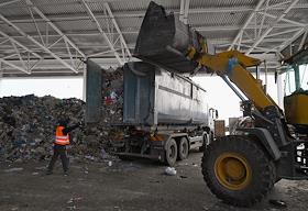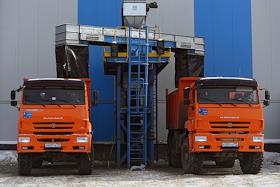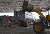 Работа комплекса по переработке отходов (КПО) "Восток". Комплекс разработан и построен компанией "Эко-Лайн". Предприятие входит в перечень объектов национального проекта "Экология". Жанровая фотография. Площадка выгрузки отходов.