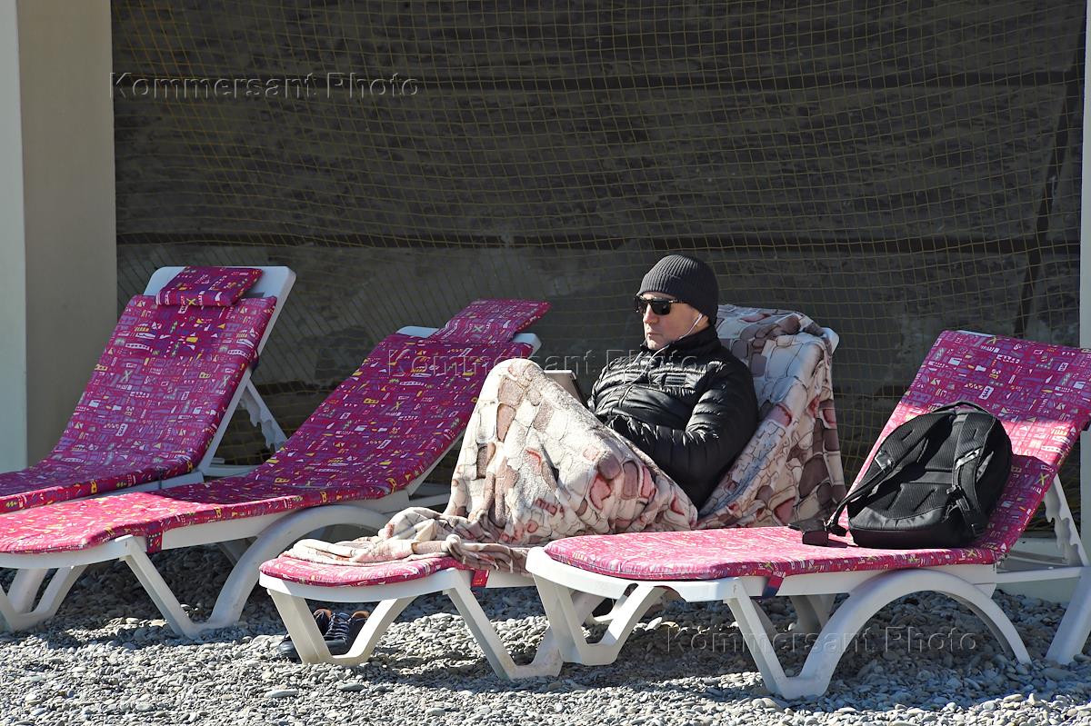 Виды Ялты. Жанровая фотография. Отдыхающие по "Программе реабилитации для переболевших коронавирусом" на пляже во время "постковидной реабилитации.