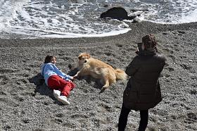 Виды Ялты. Жанровая фотография. Девочка с собакой на пляже.