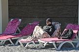 Виды Ялты. Жанровая фотография. Отдыхающие по "Программе реабилитации для переболевших коронавирусом" на пляже.