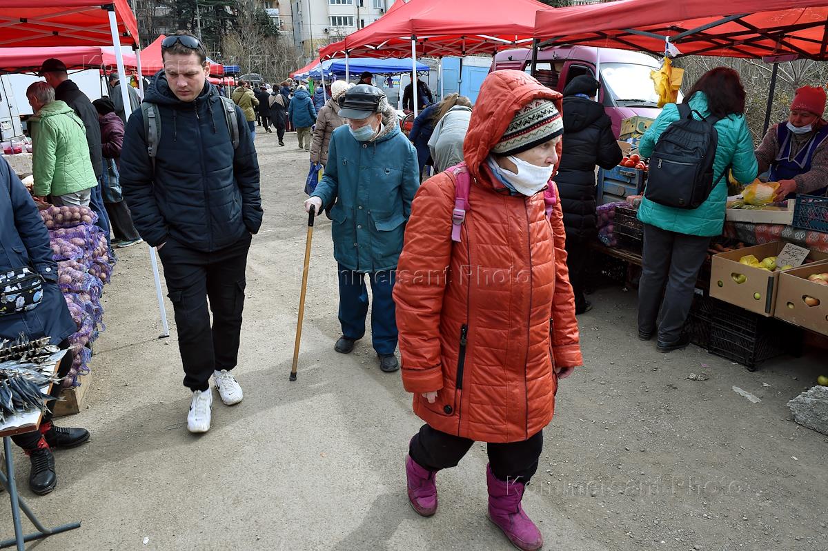 Виды Ялты. Жанровая фотография. Покупатели на продовольственной ярмарке.