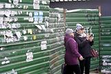 Виды Ялты. Жанровая фотография. Женщины с мобильным телефоном возле забора с частными объявлениями.