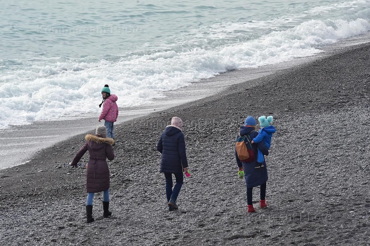 Виды Ялты. Жанровая фотография. Дети во время прогулки по пляжу.