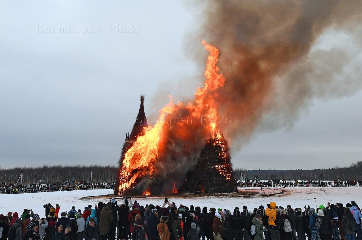 Празднование "Широкой Масленицы" в деревне Никола-Ленивец. Сожжение замка "Короналюдоеда".