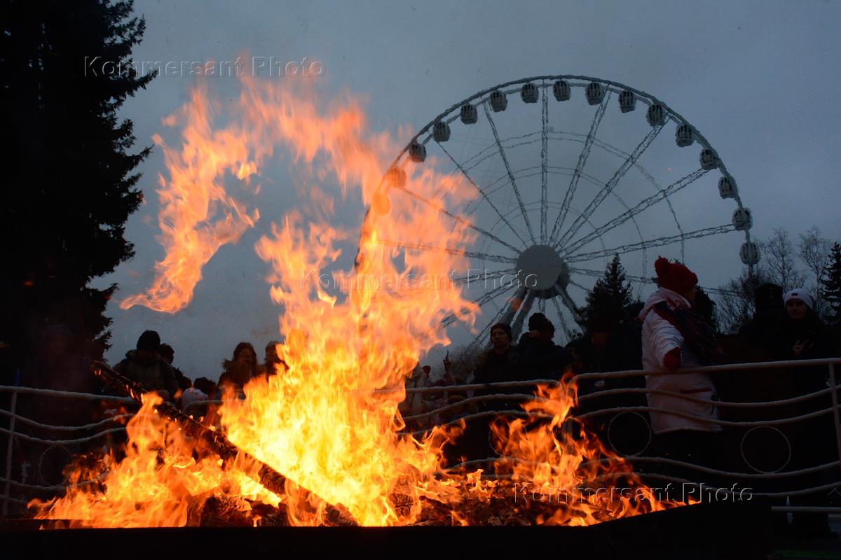 Празднование "Широкой Масленицы". Жанровая фотография. Сожжение чучела Масленицы.