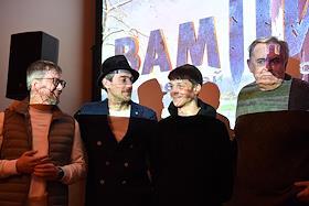 Премьера сериала "Вампиры средней полосы" режиссера Антона Маслова в концертном зале "Башмет центр". Слева направо: продюсер, сценарист Алексей Акимов, актеры Артем Ткаченко, Глеб Калюжный и Юрий Стоянов на премьере.