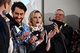 Премьера сериала "Вампиры средней полосы" режиссера Антона Маслова в концертном зале "Башмет центр". Слева направо: актеры Дмитрий Чеботарев, Ольга Медынич и режиссер Антон Маслов на премьере.