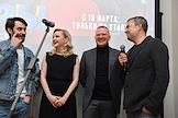 Премьера сериала "Вампиры средней полосы" режиссера Антона Маслова в концертном зале "Башмет центр". Слева направо: актеры Дмитрий Чеботарев, Ольга Медынич, режиссер Антон Маслов и продюсер Виталий Шляппо на премьере.