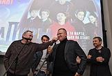 Премьера сериала "Вампиры средней полосы" режиссера Антона Маслова в концертном зале "Башмет центр". Слева направо: актеры Юрий Стоянов, Дмитрий Чеботарев, режиссер Антон Маслов и продюсер Виталий Шляппо на премьере.