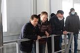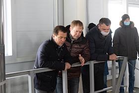 Мэр Казани Ильсур Метшин (слева) и депутат Государственного Совета Республики Татарстан шестого созыва, директор МУП "Водоканал" Андрей Егоров (справа) во время осмотра здания новой канализационно-насосной станции "Заречье".