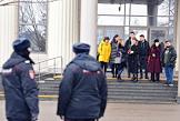 Рассмотрение апелляционной жалобы на решение Лефортовского суда Москвы о продлении ареста советнику главы "Роскосмоса" по информационной политике, бывшему журналисту газеты "Коммерсантъ" Ивану Сафронову, обвиняемому в государственной измене, в Московском городском суде. Журналист Ксения Миронова (в центре) возле здания суда.